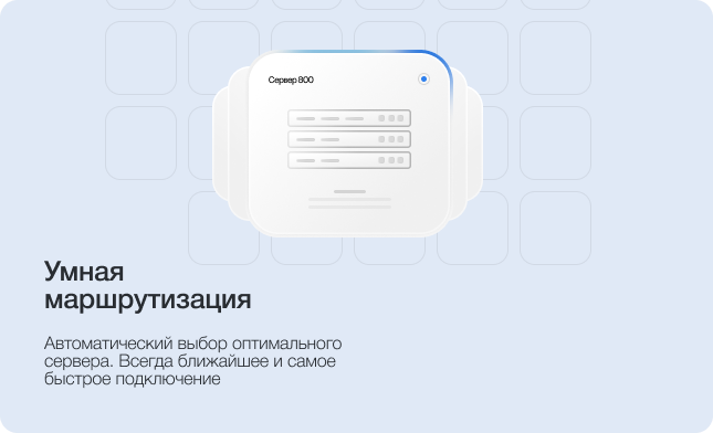 Автоматический выбор оптимального сервера. Всегда ближайшее и самое быстрое подключение
